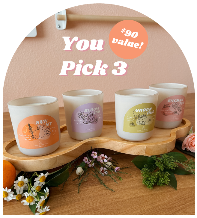 Our non-toxic, wooden wick candles are created with your mood in mind. Let our custom blended scents (moods) help set the atmosphere and vibe you're seeking!