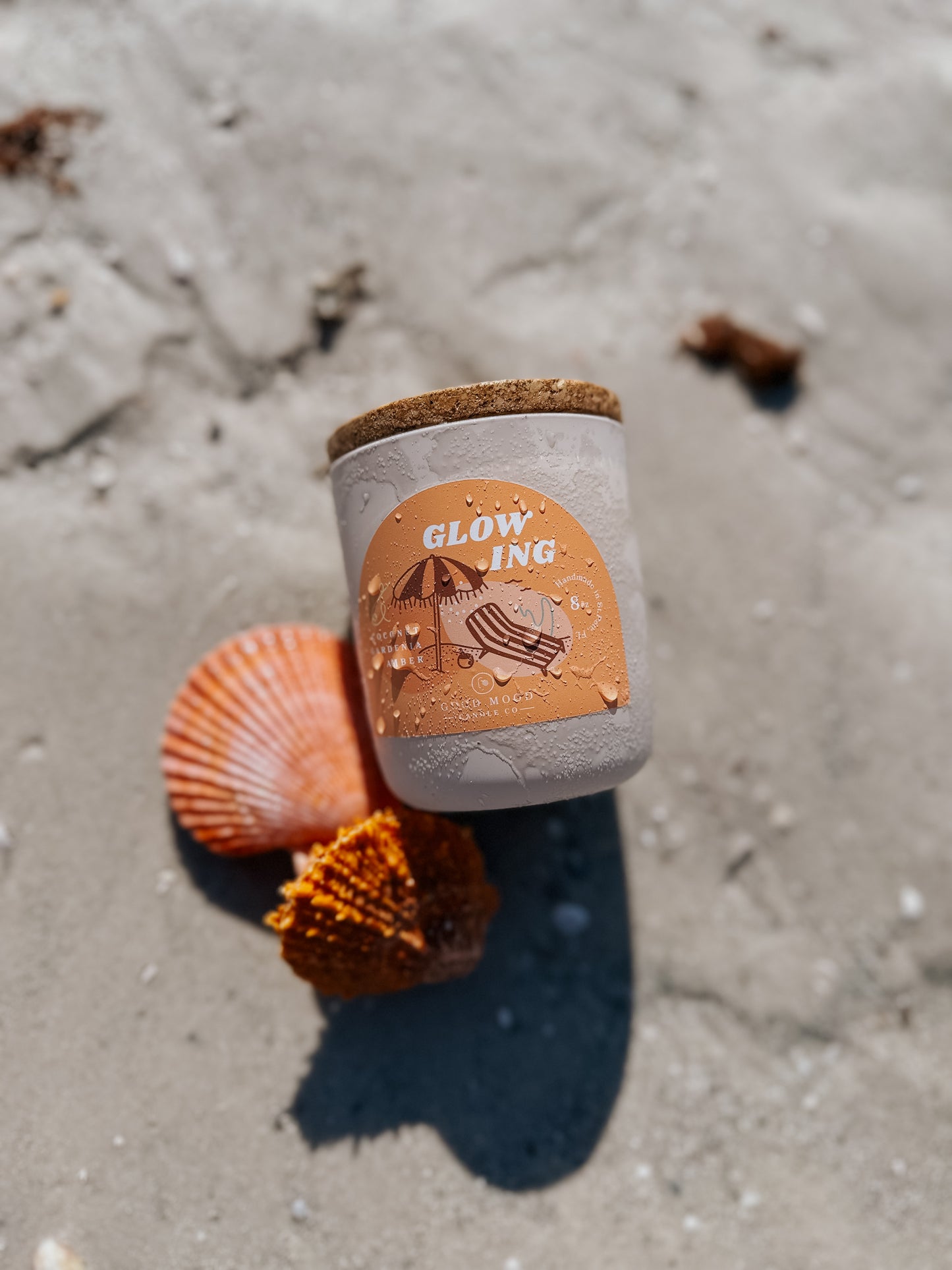 You know those days when you've spent all day in the sun until sunset, have a hint of yummy sunscreen smell left on your skin and the warm breeze is blowing salty air through your hair? It's that glowing summer feeling. Our Glowing candle is a sultry beachy scent full of coconut, creamy gardenia, and deep amber. You're going to be burning this all summer long!